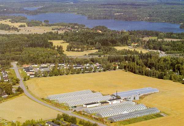 Rosodlingar AB av Lars Berggren. (1998) /hembygd/rosodl.htm Trädgårdsstaden Hässelby Orsaken till att denna trädgårdsstad växte upp, var att en förbränningsstation för sopor anlagts vid Lövsta, några km från Hässelby i slutet av 1890-talet. Eftersom det var gott om hästar i huvudstaden på den tiden, blev det en hel del stallströ, som fraktades ut till Lövsta. Stationsinspektor Lindau på Riddersviks station, (senare Hässelby station) kom på idén att sälja tomtmark till hugade trädgårdsmästare som med hjälp av stallströ ville lägga varmbänk för odling av grönsaker och i viss mån även blommor. Försäljningen gjordes i samråd med greve Bonde på Hässelby Slott, som var ägare till marken. Trädgårdsmästarna hade som regel ett hårt arbete för att få igång sina trädgårdar, men de flesta lyckades och byggde efter en tid upp prydliga bostadshus och så småningom också växthus. Varorna såldes på torgen inne i Stockholm, och ofta var det mästers fru, som ombesörjde den försäljningen. I början fraktades produkterna på båt, som avgick från Berghamns brygga. Berggrens rosodlingar i Hässelby Min far, Gustav /Gösta/ Erik, som föddes på Örbyhus Slott, hade alltifrån början hjälpt sin far med trädgården och fr.o.m. 1924 övertog han driften, som var inriktad på samma produkter, som pappa Lars-Erik odlat, d.v.s. snittrosor, krysantemum samt diverse grönsaker och blommor på friland. En uppskattad grönsak, som farfar odlade redan på Örbyhus Slott var kron-ärtsskockan. Min far drev företaget på ett förtjänstfullt sätt, så att när vi var framme vid slutet av 1940-talet, var hela markarealen täckt med växthus på en yta av c:a 12.000 m2. Lars Berggrens lärdomsår i USA Dessa båda inbjöd mig, att istället för att gå på universitet i St. Paul, Minnesota, komma till dem på O.S.U. i Columbus. Jag accepterade naturligtvis. I och med detta blev jag kurskamrat med många ros-odlarsöner från olika delar av U.S.A. Efter ett år, då jag tillgodogjort mig en hel del kunskaper om hur man odlade rosor, åkte jag med en svensk kamrat till Californien. Under vistelsen vid universitetet hade jag nämligen fått ett fint erbjudande om anställning på en rosodling utanför San Fransisco, Mt. Eden Nursery. Jag var där och tittade men kunde tyvärr ej ta anställningen, då jag redan sedan flera år tillbaka blivit inviterad till en frilandsodling av rosor. Ägaren av denna kom ursprungligen från Sverige. Han var nu gammal och pensionerad och driften sköttes av han son, Bob Lindquist. Företaget hette Howard of Hemet och låg c:a 120 km öster om Los Angeles, upp emot Klippiga bergen. Där fick jag först lära mig pollinering, d.v.s. korsning av rosor. Därefter ägnades en stor del av tiden åt ockulering. Det går så till att man sätter in ett rosöga på vildstammen, som sedan växer tillsammans. Under tiden jag arbetade i Hemet, besökte jag flera forskningsinstitut, där jag lärde mig mer om förädling. Rosodlingarna flyttar till Upplands-Bro Efter mycket sökande fann vi en lantgård i Upplands-Bro, c:a 35 km nordväst om Hässelby. Den hette Lövsta och låg vid norra änden av Lejondalssjön. Gården hade en gång ägts av Gustav Vasas far Erik Johansson. Vi köpte gården år 1953 och 1954 började vi bygga de första växthusen. Att vi fastnade för just den här gården, berodde på att här fanns riklig tillgång på vatten till växthusen. Det var inte så lätt att både driva lantbruk och odla rosor i växthus jämsides. Jag arrenderade då ut lantbruket till min befallningsman. I växthusen växte rosorna bra, mycket beroende av ny