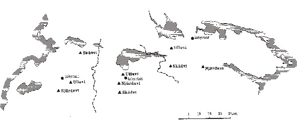 Min arbetsmetod är egentligen generande enkel. Den utgår från de upprepningar man lätt kan iaktta när man studerar sakrala ortnamn samt en del fornlämningar som labyrinter och tingshögar. Den gemensamma nämnaren för alla dessa spår av det förgångna är att de hjälper oss hitta de förhistoriska samhällenas mötesplatser. Min grundläggande hypotes är att det inte fun- nits mer än en samlingsplats av varje slag i ett förhistoriskt samhälle. När man i ett landskap träffar på tre platser som kallas Ullvi så ger detta en vink om antalet hedniska samhällen, precis som man kan bilda sig en god uppfattning om den kristna sockenindelningen genom att räkna gamla kyrkor. Kring denna enkla idé har jag byggt ett system av slutsatser. Felkällorna är dess värre betydande. Somliga skenbart sakrala ortnamn kan i själva verket vara sentida uppkallelsenamn som bara vilseleder. An- dra ortnamn kan ha försvunnit. Och det finns åtskilliga svårtolkade namn. Men felkällorna kan pareras genom att man studerar ett stort antal ort- namn som tycks falla in i samma geografiska upp- repningsmönster. Enstaka fel eller luckor kan då inte förrycka helhetsbilden. Ett genomgående drag i mitt arbetssätt är att i görligaste mån låta bredd och mängd uppväga mångtydigheten i materialet. Erfarenheterna under arbetets gång har visat att man bör kräva tydliga upprepningarav mer än |